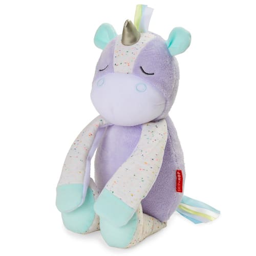 Acalme o bebê com doces canções, sons da natureza e sua voz gravada - mesmo no meio da noite A Pelúcia Acalma Bebê Unicórnio da Skip Hop apresenta um inovador sensor inteligente ativado pelo choro que responde automaticamente ao choro para que o bebê e os pais tenham uma boa noite de sono. Fácil de colocar no berço, também é fácil de configurar e personalizar - uma opção de gravação de voz permite que a mãe e o pai confortem o bebê, não importa onde estejam. Conforme o bebê cresce, ele se torna um amigo que pode ser abraçado por crianças pequenas.