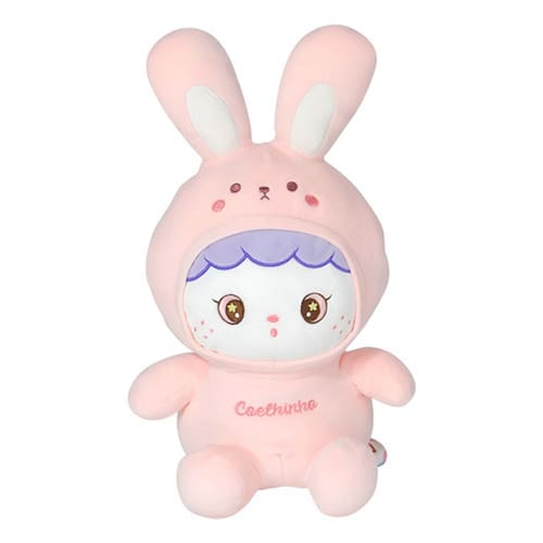 A pelúcia é linda, super delicada na cor rosa com detalhes em lilás que lhe confere muito charme, seu corpinho é macio e fofinho, muito gostoso de se apertar, ela é perfeita para acompanhar uma sonequinha e as mais divertidas brincadeiras.