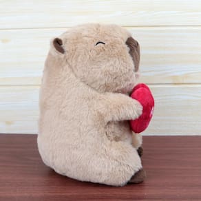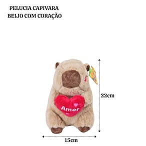 Encantadora e cheia de ternura, essa pelúcia de capivara conquista à primeira vista! Com um desenho de boquinha no rosto, que dá ainda mais personalidade ao seu jeitinho calmo e simpático, ela segura entre as patinhas um coração com a palavra "Amor" – perfeito para expressar carinho de forma divertida e fofa.