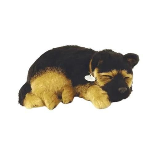 Pelúcia De Cachorro Pastor Alemão Filhote Filhote Pelúcia Perfect Petzzz Pastor Alemão Que Respira Filhotinhos que respiram como um de verdade! Filhotinho dorminhoco. Os filhotes de cães Perfect Petzzz são tão parecidos com um de estimação de verdade que todos irão se surpreender ou se deixar enganar!Estes dorminhocos respiram com sutileza como se fossem de verdade! Há até um ligeiro som de ronco. Eles são muito bem comportados e assim fazem uma aconchegante companhia em qualquer casa, escritório, dormitório ou lar. Não requer veterinário, ração ou passeios, mas respira como uma estimação de verdade! Alimentação: 1 Pilha D Grande inclusa. Idade Recomendada: A partir de 3 anos. Inclui:1 pilha \"D\" 1 Pelúcia com coleira1 caminha de pelucia1 certificado de adoção 1 escova de cerdas macias1 caixinha de transporte em papelão. Medidas aproximadas da pelúcia: Altura: 10 cm Largura: 18 cm comprimento: 25 cm Medidas da Embalagem: Altura: 13 cm Largura: 21 cm Comprimento: 28 cm OBS: O PERFECT FAZ UM BARULHO AO RESPIRAR QUE IMITA O RONCO DO ANIMAL, CADA UM POSSUI UM SOM DIFERENTE MAIS BAIXO OU MAIS ALTO.
