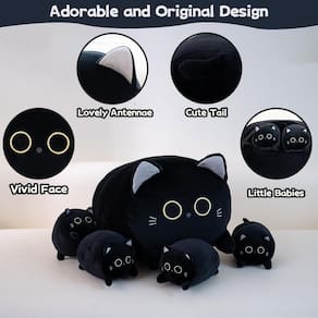 Gudisi Pelúcia de gato preto, 40,6 cm, animais de pelúcia fofos, mamãe com 4 gatinhos de pelúcia na barriga, travesseiro de pelúcia jumbo macio, presente de Natal e aniversário para meninas e meninos - Design cinco em um: abra o zíper de pelúcia de gato para encontrar quatro bebês adoráveis aninhados dentro — um design 5 em 1 que aumenta a diversão e o valor. Animais de pelúcia perfeitos para momentos divertidos e entretenimento imbatível! - Feito com cuidado: os produtos Gudisi são meticulosamente projetados e trabalhados com cuidado, usando materiais de alta qualidade para garantir uma experiência superior para nossos clientes. Comprar uma vez destacará a grande diferença entre nós e outras marcas. - Material macio e amigo da pele: aproveite a suavidade luxuosa e as características agradáveis à pele do travesseiro de pelúcia de gato preto. O material é muito suave contra a sua pele, proporcionando um toque reconfortante. O bicho de pelúcia é preenchido com algodão elástico, oferecendo a quantidade certa de suporte. - Escolha de presente perfeita: o bicho de pelúcia de gato preto é uma ótima opção para qualquer ocasião, como aniversários, Halloween, Natal, Ação de Graças e Dia dos Namorados, devido ao seu design exclusivo e apelo emocionante, tornando-o um presente atencioso e querido. - Abrace a alegria com cada abraço: deixe o travesseiro de brinquedo de pelúcia de gato preto iluminar seus dias com seu design peculiar, textura macia e versatilidade. Envolva-se em seu abraço caloroso, crie momentos de relaxamento e experimente o prazer que ele traz.