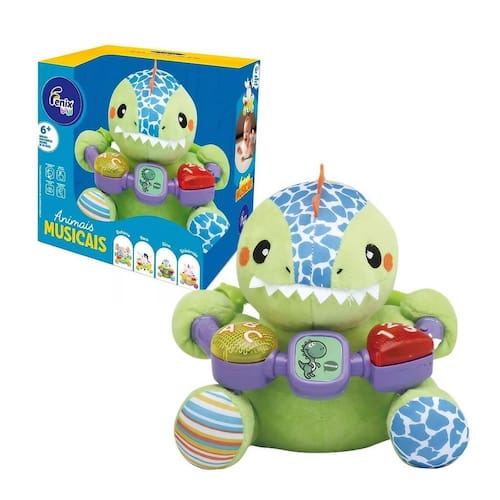 A partir de hoje, os momentos de brincadeira, diversão e descanso serão melhor acompanhados. Com a Pelúcia Dino Musical da Fenix Brinquedos não há limites para se divertir com este brinquedo de pelúcia, que será fonte de tranquilidade para as crianças, ajudando-as a desenvolver habilidades sociais, promovendo sua imaginação e criatividade.Características do Produto:Desenvolvimento infantil: Ajuda na coordenação motora e nos treinamentos auditivos e visuais das crianças.Material de alta qualidade: Pelúcia super fofa e macia para maior conforto durante a brincadeira.Botões interativos: Vem com botões interativos para tornar a experiência de brincar ainda mais divertida e envolvente.Dimensões do Produto:Altura: 15cmLargura: 10cmComprimento: 15cmChecklist de Benefícios:Desenvolvimento infantil: Ajuda na coordenação motora e nos treinamentos auditivos e visuais.Material de alta qualidade: Pelúcia super fofa e macia.Botões interativos: Oferece botões interativos para uma experiência de brincar mais envolvente.Entretenimento garantido: Proporciona horas de diversão e aprendizado para as crianças.