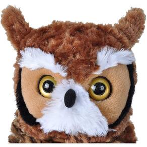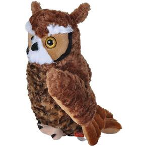A grande coruja-de-chifre é a mais famosa ave de rapina canadense. Também vive na América do Norte e é conhecido por caçar à noite. Cinza claro e marrom escuro são as principais cores desta criatura, muitas vezes ostentando um tufo branco sob o queixo. Essas corujas têm um grande apetite por pequenos roedores e insetos, onde mergulham para caçar do céu. Os tufos de orelha fofos tornam esses pássaros distintos e absolutamente adoráveis para um animal de pelúcia, todas as idades vão querer segurar em seus braços e dormir com ele à noite. Os usos para brinquedos de pelúcia são infinitos através de brincadeiras imaginativas. A República Selvagem vem desenvolvendo brinquedos educativos e de pelúcia animal para crianças de todas as idades desde 1979, com uma especialização única em animais de pelúcia realistas.