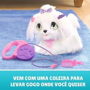 A Fur Real chegou com os mascotes de pelúcia mais fofos do mundo, oferecendo uma variedade para você escolher algo realmente especial. Divirta-se em seus passeios com a nova pelúcia do filhote Gogo! Leve Gogo para passear e aproveite a companhia ao ar livre com seu novo amigo. Gogo vem com uma coleira para acompanhá-lo em suas aventuras e possui mais de 100 reações e sons!