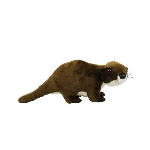 Essa lontra de pelúcia é confeccionada com fibra siliconada de alta qualidade, o que a torna super macia ao toque. Seu bico e patas são feitos de material sintético na cor marrom escuro, combinando perfeitamente com a pelagem.