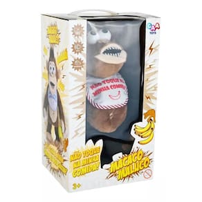 E- Este brinquedo de pelúcia é perfeito para crianças. - Ele é feito de um material macio e fofo, e interaje com as crianças. - Ao retirar a banana de sua mão ele começa a gritar e se mexer até que a banana seja devolvida.