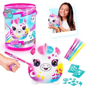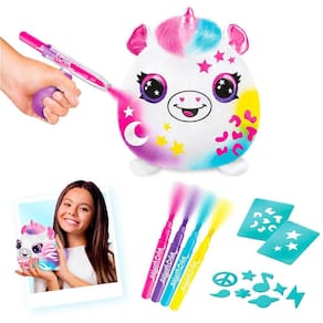 Pelúcia para Pintar Airbrush na Lata Unicórnio - Fun Divirta-se Fun Airbrush Pelúcia na Lata. Seu animal de estimação fofinho chegou para alegrar ainda mais sua diversão. Macio e sedoso você pode estilizar como sua imaginação mandar. O kit contém 2 seringas aerógrafas para colorir, sticks para molde de pintura e 4 canetas para colorir. Selo Inmetro: 007589/2022