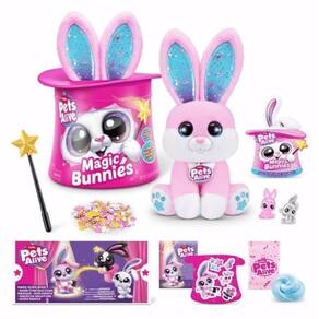 Pelúcia Pets Alive Magic Bunnies Rosa Candide 1236 Descubra Pets Alive Magic Bunnies, um brinquedo mágico que combina interatividade e surpresas. Com uma cartola e uma varinha especial, as crianças podem revelar um adorável coelho e desbloquear surpresas emocionantes, como confetes, slime e um mini coelhinho. Esta experiência promete estimular a imaginação e encantar crianças de todas as idades. Prepare-se para uma jornada mágica com Pets Alive Magic Bunnies Homologação Inmetro: CE-BRI/IQB 006332 52225/18-045