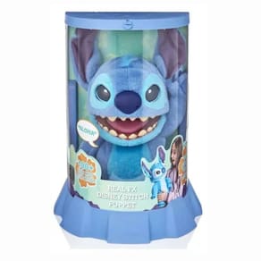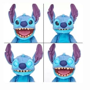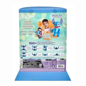 Ele fala com sua voz alienígena de Tantalog, piscando e apertando os olhos, movendo a boca, virando a cabeça, orelhas caídas e até mesmo sensores de toque de nariz, cabeça e língua! Com quase meio metro de altura, Stitch é muito parecido com o que você imaginaria na vida real!