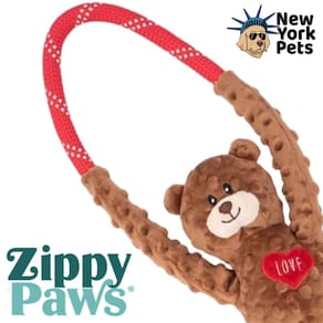 O cabo de guerra ficou muito mais divertido com o Bear Love RopeTugz® da ZippyPaws! Com corda durável enrolada em todo o corpo, este brinquedo de corda extra resistente pode suportar horas de brincadeira heroica de cabo de guerra com seu cãozinho.
