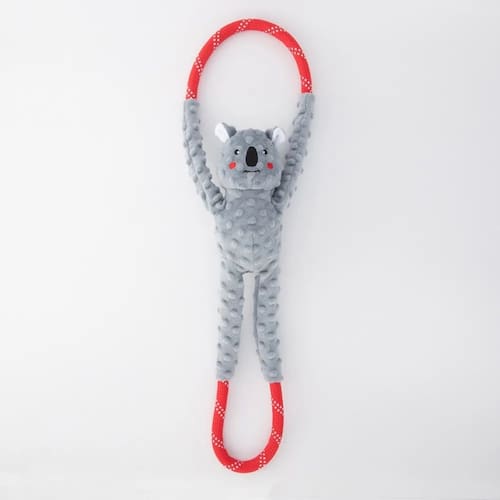 O cabo de guerra ficou muito mais divertido com o Koala RopeTugz® da ZippyPaws! Com corda durável enrolada em todo o corpo, este brinquedo de corda extra resistente pode suportar horas de brincadeira heroica de cabo de guerra com seu cãozinho. Utilizando a mesma corda de escalada durável usada em nossas coleiras Climbers, os brinquedos para cães RopeTugz® são projetados para brincadeiras de puxar. Cada brinquedo RopeTugz® inclui 1 grande apito redondo em seu corpo de pelúcia macio. Não é para mastigação pesada.