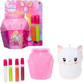 Com a Barbie Pelúcia Tie Dye Surpresa, as crianças podem criar suas próprias criações coloridas quantas vezes quiserem. Dentro de cada frasco está um animal de estimação macio e fofinho de 17 cm, juntamente com tudo o que é necessário para dar à pelúcia um aspecto único e tingido. Qual surpresa você irá revelar? Poderá descobrir um gato, um unicórnio ou uma preguiça. As crianças encontrarão três garrafas cheias de tinta lavável e uma vazia anexadas ao frasco e, em seguida, seguirão os quatro passos fáceis para tingir e personalizar o adorável animal escondido no interior.