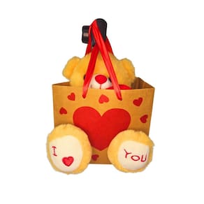 Urso de Pelúcia na Sacolinha com Coração - Bege Presente Romântico e Fofo Ideal para Datas Comemorativas