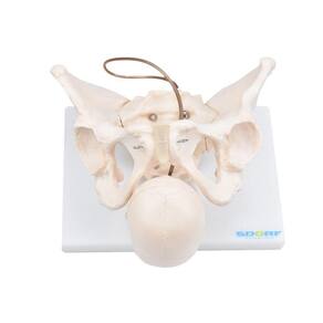 Pelve c/ Demonstração do Parto SD-5005/C Modelo anatômico do esqueleto pélvico com demonstração do parto, confeccionado em PVC; Apresenta todas as estruturas anatômicas da pelve feminina bem como a cabeça de um bebê, com este modelo anatômico de demonstração do parto SD-5005/C é possível identificar e demonstrar: * Sacro (Vértebras Sacrais), * Cóccix (Vértebras Coccígeas), * Ílio, * Ísquio, * Púbis, * Sínfise púbica, * Articulação sacrilíaca; * Crânio de um bebê com suturas; * Demonstrar: Rotação fetal; Encaixe, Passagem do bebê. Montado sob base plástica;