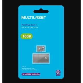 Pen Drive 2 Em 1 Usb 2.0 - Pen Drive + Cartão De Memória - 16 Gb - Multilaser O pen drive 2x1: pendrive + cartão de memória da Multilaser, armazene seus dados mais importantes de forma totalmente segura. Com um design compacto, você pode levar seus documentos, músicas e fotos para onde quiser. Especificações: Capacidade: 16 GB Compatível: Mac OS 9.0 e superiores / Windows 98 e superiores Taxas de transmissão de dados: 3 MB/s (gravação) e 10 MB/s (leitura) Conexão USB 2.0: DC 5 V Garantia: Prazo: 10 anos (contra defeitos de fabricação pelo fabricante) Itens inclusos: 1 Pen Drive 2x1: pendrive + cartão de memória Multilaser Imagens meramente ilustrativas Tipo de Mídia - Cartão de Memória Pen Drive Capacidade - 8 GB Ean: 7899838836393