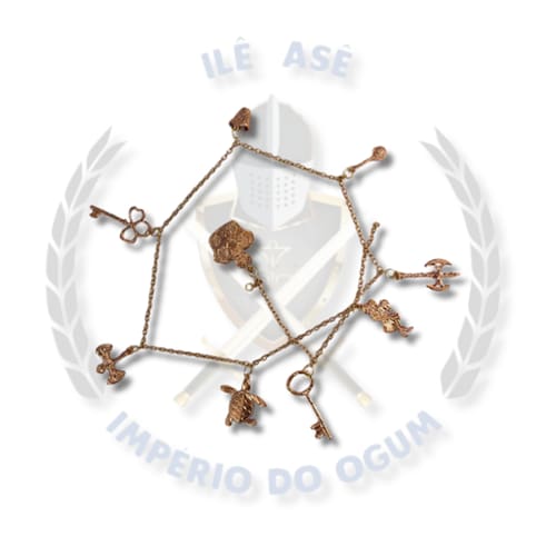 Uma "penca de orixá" refere-se a um conjunto de pingentes ou adornos utilizados em práticas religiosas afro-brasileiras, como a Umbanda e o Candomblé. Esses objetos são normalmente feitos de metal e representam as divindades (orixás) da religião, sendo utilizados em assentamentos (ibás) e para a decoração de altares.