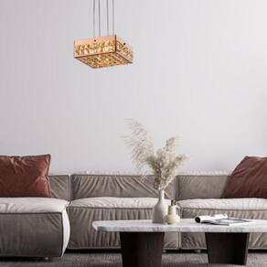 Pendente WINDOWS. Modelo 4 luzes. Versão quadrado. Potência máxima 15W do LED. Corpo em aço inox. Cristais de alta iridescência. Lâmpadas não inclusas. Utilizar lâmpadas E27. 5 anos de garantia. Uso em ambiente interno. Acabamento: Cristais de Alta Iridescência Acompanha Cúpula: Não Acompanha Lâmpada: Não Altura: 7 Altura Regulável: Sim Ambiente de Iluminação: Interno Ambiente Principal: Sala de Estar Comprimento do Cabo: 110 Cor do Acabamento: Dourado Formato: Quadrado Largura: 22 Material Principal: Aço Peso: 1.937 Possui Braços: Não Profundidade: 22 Quantidade de Itens: 1 Quantidade de Lâmpadas: 4 Tipo de Luminária: Pendente