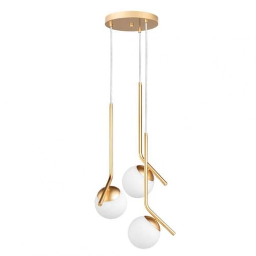 Modelo pendente 3 bolas. Versão dourado. Para lâmpadas até A60 (não inclusas). Dimensões da bola Ø15. Potência máxima 40W. Estruturado em alumínio com pintura epóxi. Bola de vidro jateado. 5 anos de garantia. Acabamento: Pintura epóxi Acompanha Lâmpada: Não Altura: 150 Ambiente de Iluminação: Interno Ambiente Principal: Sala de Jantar Cor do Acabamento: Dourado Diâmetro: 40 Formato: Redondo Largura: 40 Material Principal: Alumínio Peso: 1.5205 Profundidade: 40 Quantidade de Itens: 1 Quantidade de Lâmpadas: 3 Tipo de Luminária: Pendente