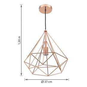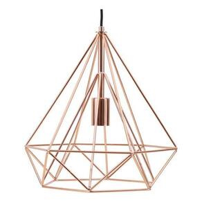 Design moderno e industrial, com estrutura aramada em metal; Cor cobre, que adiciona um toque de sofisticacao e aconchego; Ideal para uso em diversos ambientes, como salas de jantar, cozinhas, quartos e areas de estar; Suporta uma lampada com soquete E27 nao inclusa , permitindo a utilizacao de diferentes tipos de lampadas, como LED, incandescente ou fluorescente; Facil instalacao, com sistema de fixacao para teto.