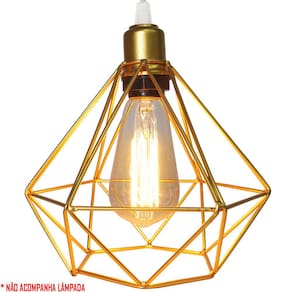 Pendente Aramado Diamante Luminária Lustre Luxo P Cabo Cristal Retrô Vintage Agp Ilumini Industrial - Cor: Dourado