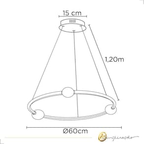 Feito em alumínio de alta qualidade, esse pendente é resistente e durável. Sua base em metal garante uma fixação segura e estável. Além disso, o pendente vem com 3 globos de vidro suspensos em seu círculo, criando uma imagem impressionante.