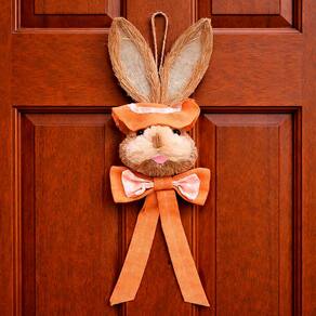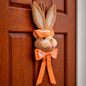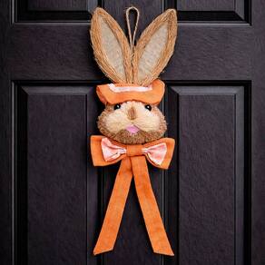 Deixe sua decoração de Páscoa ainda mais charmosa com este lindo pendente em formato de cabeça de coelho com laço. Produzido em palha, traz um visual rústico e delicado que combina perfeitamente com decorações naturais, clássicas ou modernas