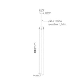 Com medidas de largura de 4cm e comprimento de 30cm, esse pendente conta com um cabo tecido ajustável na altura de 1,50m, permitindo que você o ajuste de acordo com a necessidade do espaço.
