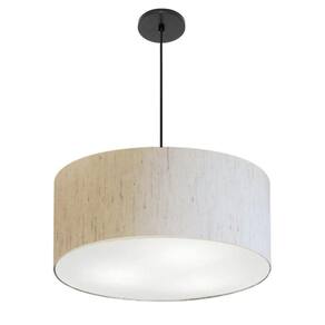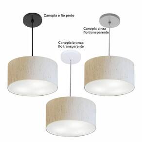 Pendente Cilíndrico Vivare Free Lux Md-4386 Cúpula Em Tecido Linho Bege Da Canopla Canopla Preta E Fio Preto