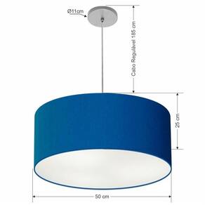 Pendente Cilíndrico Vivare Free Lux Md-4386 Cúpula em Tecido - Cor: Azul-marinho | Cor da Canopla: Canopla cinza e fio cristal