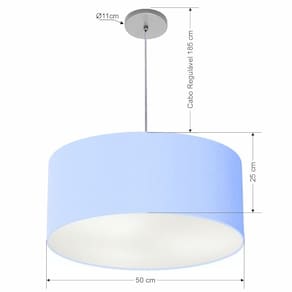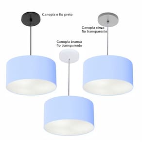 Pendente Cilíndrico Vivare Free Lux Md-4386 Cúpula em Tecido - Cor: Azul-bebê | Cor da Canopla: Canopla cinza e fio cristal