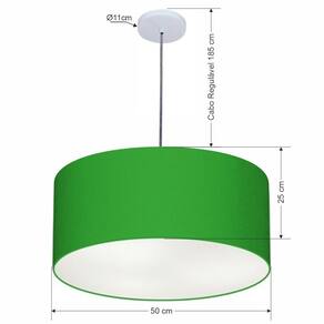 Pendente Cilíndrico Vivare Free Lux Md-4386 Cúpula em Tecido - Cor: Verde-folha | Cor da Canopla: Canopla branca e fio cristal