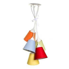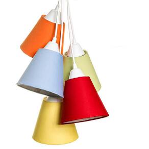 Opte pelo lustre com 5 lâmpadas para realçar a decoração do quarto do bebê e ao mesmo tempo adequar um efeito luminoso agradável. Se estiver à procura por iluminação e charme, esta é a solução Dados TécnicosPendente com 5 cúpulas confeccionadas em arame galvanizado e acetato forrado com tecido.Acompanha fiação completa com canopla de acabamento para o teto.A altura dos cabos elétricos pode ser regulada no momento da instalação. Lâmpadas SuportadasEconômicas/ Led: Qualquer LâmpadaIncandescente amarela : Até 40w por Soquete MedidasCada cúpula tem:Parte de cima: 8 cm de diâmetroParte de baixo: 14 cm de diâmetroAltura: 11 cmCabo: 90 cm de comprimentoCanopla: 15 cm de diâmetro
