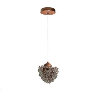 Cor: Cobre Soquete: 1 x G9 Tensão: 110/220V Potência Máx: 12W Diâmetro: 20 cm Diâmetro da canopla: 12 cm Espessura da canopla: 2 cm Comprimento do cabo: 2,5 m Material: Metal e Cristal Marca: Não Informado