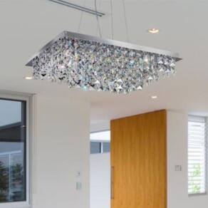 Pendente LYON, possui design elegante e moderno, base estruturada em aço inox com acabamento em banho cromo, cabo energizado e cabos de aço de 1,0m com altura ajustável e pingentes em cristal lapidado de alta iridescência. Acabamento: Cristais de Alta Iridescência Acompanha Cúpula: Não Acompanha Lâmpada: Não Altura: 15 Ambiente de Iluminação: Interno Ambiente Principal: Sala de Estar Cor do Acabamento: Transparente Formato: Quadrado Largura: 48 Material Principal: Aço Peso: 3.7 Possui Braços: Não Profundidade: 30 Quantidade de Itens: 1 Quantidade de Lâmpadas: 8 Tipo de Luminária: Pendente