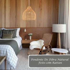 Pendente De Fibra Natural Rattan Artesanal Mesa Nat38
