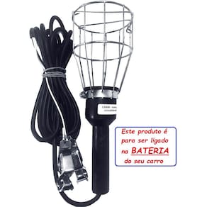 Ideal para Socorro mecânico e emergências noturnas. Produto para ser ligado na bateria do veículo com uma lâmpada específica de 12 Volts soquete E27.