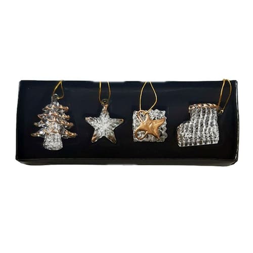 Enfeite Natalino Kit Pendentes de Natal em Cristal Figuras Natalinas com 4 Pçs