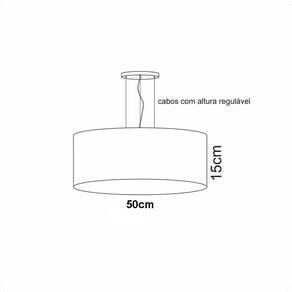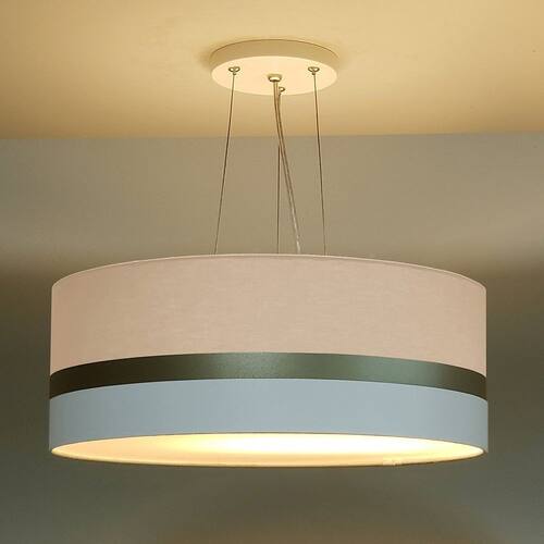 O pendente é indicado para ambientes internos e pode ser instalados em salas de estar ou jantar, quartos, escritórios, etc. Além de atribuir maior personalidade ao ambiente esse modelo também propicia um espaço mais acolhedor por meio da sua iluminação delicada e difusa. Acabamento: PET Flexível Acompanha Cúpula: Sim Acompanha Lâmpada: Não Altura: 15 Altura Regulável: Sim Ambiente de Iluminação: Interno Ambiente Principal: Sala de Jantar Complexidade da Montagem: Baixa: pode ser montado por uma pessoa sozinha Comprimento: 50 Comprimento do Cabo: 120 Cor: Cru/Bronze/Branco Cor do Acabamento: Bege Cor do Produto: Cru/Bronze/Branco Cor Predominante: Bege Diâmetro: 50 Formato: Cilindrico Largura: 50 Linha ou Coleção: Faixa Dupla Material da Cúpula: PSAI de Alto Impacto Material Principal: Tecido Medida da Canopla (A x D): 0,5x12cm Medida da Cúpula (A x D): 15x50 Necessita Montagem: Não Origem do Produto: Nacional Peso: 1.42 Possui Braços: Não Possui Cristal: Não Potência: 15 Potência Máxima da Lâmpada: 15 W Profundidade: 50 Quantidade de Itens: 1 Quantidade de Lâmpadas: 3 Soquete: E-27 Tipo de Luminária: Pendente Voltagem: Bivolt Ean: 7899679218488