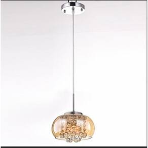 Pendente de vidro champagne com cristais na cor transparente e altura regulável na instalação.