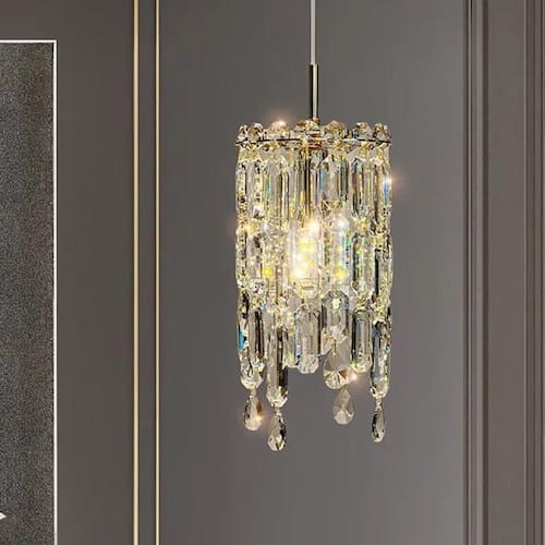 Cód: 12886-PL Pendente Dourado com Cristais Transparente Soquete: 1*E27 (Lâmpada não inclusa) Material: Alumínio e Cristais Cor: Dourado e Transparente Dimensões: Ø15cm Canopla: Ø8cm Comprimento do Cabo: 180cm
