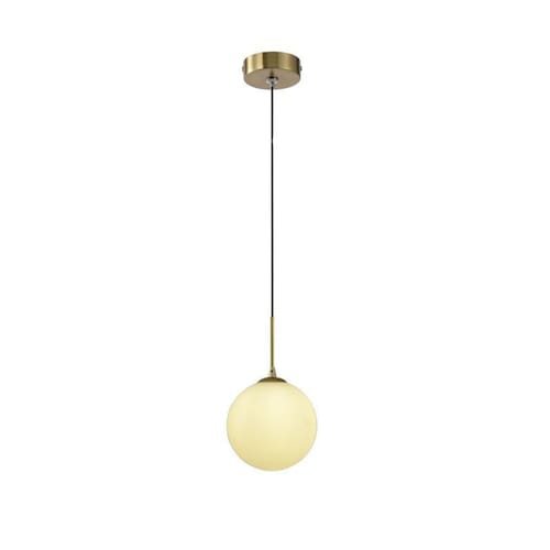 Pendente desenvolvido em metal dourado com globo de vidro branco leitoso, design elegante. Capacidade para lâmpada G9, ideal para ser destaque em qualquer ambiente.