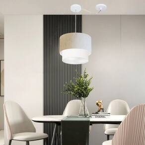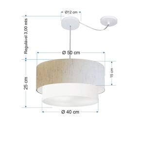 Pendente Duplo Cilíndrico Com Desvio de Centro Vivare Md-4366 Cúpula em Tecido 50x40cm - Bivolt - Cor: Linho-bege-branco | Voltagem: 127/220V