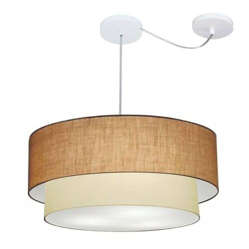 Pendente Duplo Cilíndrico Com Desvio de Centro Vivare Md-4368 Cúpula em Tecido 60x50cm - Bivolt - Cor: Palha-bege | Voltagem: 127/220V