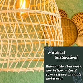Com um design leve, moderno e feito à mão com rattan natural, esse pendente é a escolha perfeita para quem busca um toque rústico e sofisticado na decoração. A luz suave e difusa valoriza ainda mais a textura natural do material, trazendo conforto e estilo para qualquer espaço.