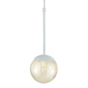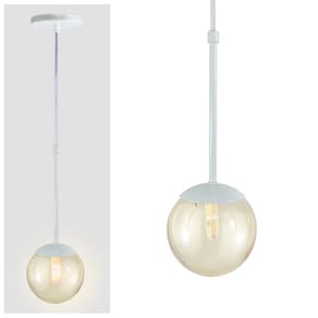 Pendente Globo Esfera De Vidro 12cm - Branco - Vidro Ambar Inspirado no Design Vintage o pendente Globo 120 transmite uma decoração sofisticada e dá um toque divertido ao espaço. Seu design minimalista com esfera de vidro tira qualquer sala da . Uma peça diferenciada e muito elegante que fará toda a diferença no seu ambiente. Ideal para iluminações de centro de mesa, balcões, mesa de jogos entre outros. Descrição Técnica: - Modelo: GLOBO 120 - Acabamento do Vidro: ÂMBAR - Acabamento da haste: BRANCO - Quantidade de soquetes: 1 - Material: Vidro e Alumínio - Tamanho do Globo (LxAxP): 12cm x 12cm x 12cm - Cabo: 1m (regulável) - Soquete: Padrão G9 - Bivolt: Sim - Canopla: Em metal com regulador ****