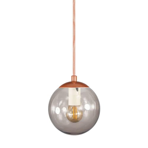 Pendente Globo Esfera De Vidro Fumê 14cm - Bronze Inspirado no Design Vintage o pendente Globo transmite uma decoração sofisticada e dá um toque divertido ao espaço. Seu design minimalista com esfera de vidro tira qualquer sala da . Uma peça diferenciada e muito elegante que fará toda a diferença no seu ambiente. Ideal para iluminações de centro de mesa, balcões, mesa de jogos entre outros. Descrição Técnica: - Modelo: GLOBO 14cm - Acabamento do Vidro: FUMÊ - Acabamento da Base: BRONZE - Quantidade de soquetes: 1 - Material: Vidro e Alumínio - Tamanho do Globo (LxAxP): 14cm x 14cm x 14cm - Cabo Revestido em tecido: 1m (regulável) - Soquete: E27 - Bivolt: Sim - Canopla: Em metal com regulador ****