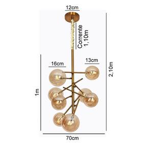 Pendente Jabuticaba Moderno 8 Vidros Âmbar Material: Metal Cores: Bronze Medidas: Diâmetro 70cm Altura Pendente: 2,10 Metros Regulável na altura Corrente: 1,10m Vidros: Cor Âmbar Medidas 13cm e 16cm Lâmpadas: 8 Lâmpadas Modelo G9 Obs. Lâmpadas não inclusa no produto Compatível com Lâmpadas de Led G9 Modelo: Pendente Atributo: Opção de Montagem direto na base sem a corrente Imagem 3 Voltagem: Bivolt Peso: 4 kg : 90 dias contra defeito de fabricação Marca: Não Informado