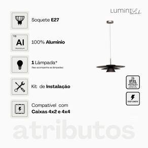 O Pendente Jete D400 é uma luminária pendente elegante e moderna, ideal para compor ambientes com sofisticação e estilo. Fabricado em alumínio, este modelo é resistente e leve, proporcionando uma instalação prática e segura no teto. Com um cabo de 1 metro, o pendente se adapta facilmente a diferentes alturas, permitindo uma iluminação direcionada e eficiente.\nCompatível com lâmpadas GU10, o Pendente Jete D400 é bivolt, oferecendo versatilidade para diferentes fontes de energia. Sua estética contemporânea se destaca em salas de estar, cozinhas, áreas de jantar ou escritórios, conferindo um toque de classe e modernidade ao espaço.\nFeito no Brasil, este produto possui o código de origem 0, garantindo a procedência nacional e a qualidade que você espera. O NCM 9405.29.00 classifica este item dentro da categoria de artigos de iluminação, facilitando sua identificação tributária.\nAdquira agora o Pendente Jete D400 e transforme seu ambiente com uma iluminação sofisticada e funcional. Marca: Não Informado