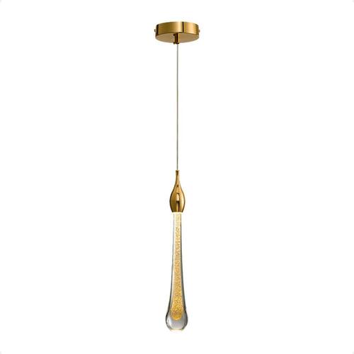 Pendente Led Moderno Taschibra Romana Gota Luz Quente 3000K Bivolt Características Gerais do Produto: Benefícios do produto: Sofisticado e moderno, LED de alto brilho, durabilidade estendida, pintura automotiva, possibilita regulagem na altura, economize até 85% de energia. Dimensões AxLxP CM : 35,8 X 5,1 X 5,1 Formato: Gota Cor da luz: 3000K Quente Produzido em: Metal, Vidro e Componentes Elétricos Voltagem: Bivolt em 110V e 220V Alimentação: Energia elétrica Cor acabamento: Dourado Potência: 5W Fluxo luminoso: Decorativo Cor do cabo: Transparente IRC: 80 Para uso em soquete: LED já integrado, não se utiliza soquete Comprimento do cabo: 90 cm, altura regulável : 1 ano junto ao fabricante Aplicação: Sobrepor Vida útil: 15.000 horas Grau de proteção: IP20 Acompanha o produto: 01 Lustre Completo 01 Kit Instalação 01 Manual de Instalação : 1 ano junto ao fabricante Marca: Não Informado