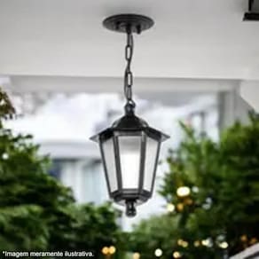 Garantia: 90 dias / Peso: 0,660kg / Cor predominante: preto / Ref: 7898505471547; Dimensões totais do pendente: 18cm (C) x 18cm (L) x 58cm (A); Conteúdo: 1 pendente injetado de teto; Soquete: E27, até 20W; Não acompanha lâmpada. Voltagem 127/220V~ Bivolt; Instalação: Teto; Material: plástico, alumínio; Modelo: Grega.